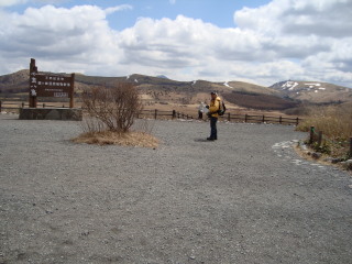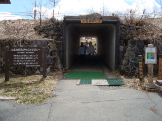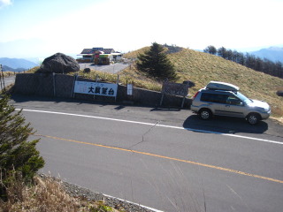 以前来た時(2010年1月11日)はビーナスラインが冬季通行止めでしたので、指差す方(ビーナスライン入口付近)からずっと雪道を来ました。あの時は天気が悪く何度か引き返そうと思いつつ進んできたら、途中から展望が開け、素晴らしい山頂展望が得られたのでした。懐かしく思い出します。 車の所に戻ると展望台駐車場のロープが外され、中に入れるようになっていました。 |