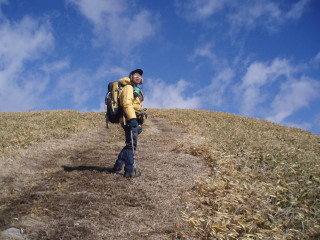 三峰山山頂へのルートが目の前に延びて その上は真っ青な空。 ![]() |