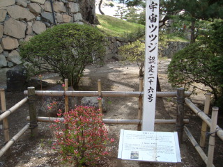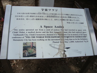 | 宇宙飛行士向井千秋さんと一緒に宇宙を旅したツツジの種から発芽させたもの。ここに植えられたのですね。 平成12年5月1日植樹ということは間もなく9年。 |