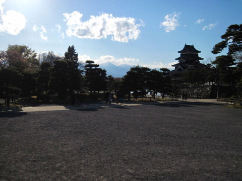 | 博物館の外に出るとようやく常念岳が見えてきました。 松本城と一緒に絵になります。 ![]() |