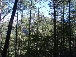 | 目の前に大きく瑞牆山が見えてきました。樹林のブラインドがかかっていますがこの眺めもまた良いものです。 | ||||