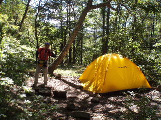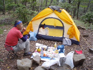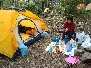 | 今回も余裕のテント。体力の余裕はまぁ1時間の道のりなればこそ^_^; 設営を終えて瑞牆山に出発。 以前はここにテントを張って、先に金峰山、翌日に瑞牆山でしたが今回はその反対。 |