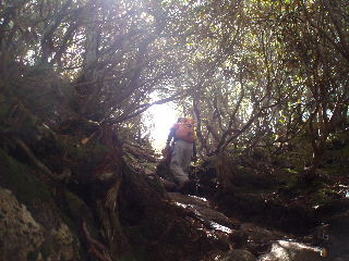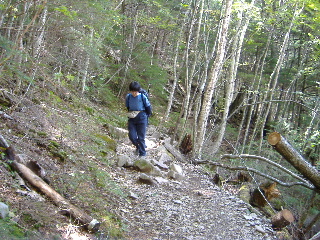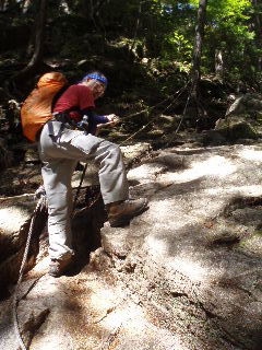 | 要所にはロープがかけられていますが、慣れている人は使わずに歩けそうなところを選っていきました。けっこう滑ってましたけど・・・プライドなんでしょうかね。 | ||||