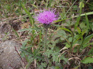 | もちろん、どんどん抜かれます。どうぞ、どうぞ・・・ 傍らにはリュウノウギク。 |