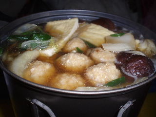 | 管理人さんと話している間に外は寒くなったのでちゃんこ鍋は結局テントの中で。美味しい♪ 今週末もまたチャンコかな?(^_-)-☆ |