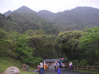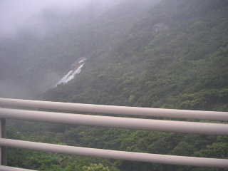 下りは長く感じた。木の根の多い急勾配でその上雨も本降りになってしまい、渡渉ができるかちょっと気になった。 一本道ではあったが珍しくどんどん下っていく夫に追いつけず途中はぐれたかと心配になった。まったく・・姿の見える位置にいてくれないと・・・(怒) 若いカップルや単独の子が登っていくのを気にしつつ見送って、私たちは下っていった。幸い雨はその後小止みになり、ひと安心。無事渡渉して登山口へ。千尋滝に寄ったが、この時はガスってまったく見えなかった。 このあと尾之間温泉へ(¥200)。そして大川の滝を眺めながらドライブで島を一周。 |