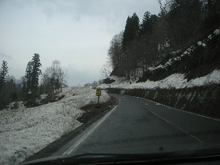 田沢湖を通過し、阿仁町に向かうと道路は除雪されているが、民家も畑もまだ雪に覆われているところがありびっくり。今年の大雪を改めて思った。 |