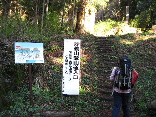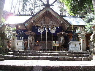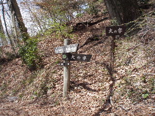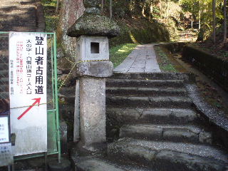 | 本殿への階段の右脇が大の字、および山頂ルートへのコースです。山頂ルートは当然ながら上級者コース。 |