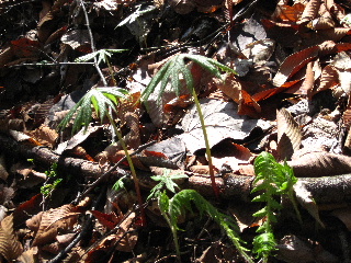 500〜700mはモミ、ツガ、イヌブナ、コナラ、カエデなど針葉樹と広葉樹が交じり合っている。
