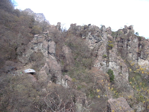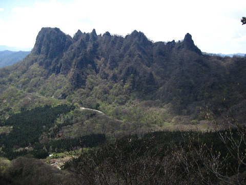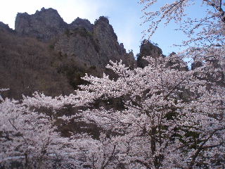 | 妙義山は赤城山、榛名山と共に上毛三山のひとつに数えられています。今回それらを検討しましたが、さくらの里が見頃だということだったので妙義山にしました。 |