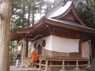 中之岳神社は岩の下にもぐりこむように