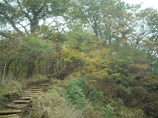 塔ノ岳に向けて歩き出す頃には青空が隠れ、肌寒くなってきた。そして雨が落ちてきたので途中、合羽とザックカバーを装着。思っていたより天気の崩れは早いようだった。時々降る所ありというのは此処のことだったか・・・。