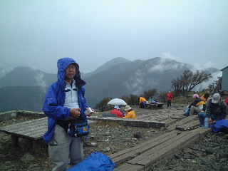 左【丹沢山、蛭ヶ岳方面を望む:塔ノ岳山頂では小雨】