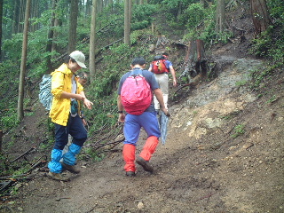 それでもバスには登山者数名。しかし大倉はいつもなら混み合っているのに、さすがに閑散としている。物好きな我らが御同輩(というには若者ばかりだった)を先ず見送ってから私達も出発。合羽を着ず、私はスパッツだけつけていったが結構蒸し暑かった。気温は終始20度前後、山歩きとなると暑い。前日の30度を超える夏日ではなくて良かったが。