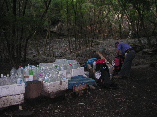 一応トレーニングだから、私は準備済みの縦走装備だ。あとは荷揚げ用の水2本を入れて、予定より多目の重量。夫は自分の飲み物と合羽だけ入れた大きな50Lザックを持ち、鍋割山荘荷揚げ用の水2Lを10本詰めた。オイオイ、大丈夫? 今回は二人とも20キロを超えているが、実際には15キロぐらいに減らしたい(無理かなぁ・・・)。