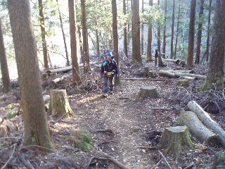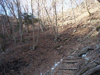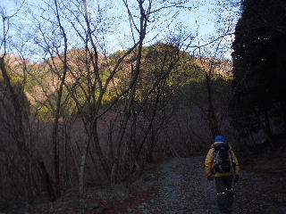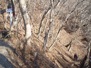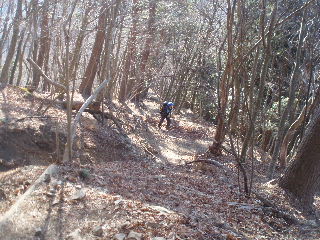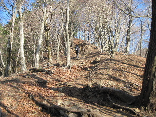 落葉樹の間から富士山が見えてこないかと注意して登っていくのですが、チラリとも見えません(~_~;) |