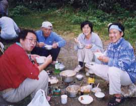 無事に赤湯に着くと、リーダーが収穫の茸でうどんを作ってくれた。なんて良いリーダーなのだ。早速我々の学習成果を見てもらう。ピンポーン、全部正解で大喜び。でもやっぱり今度来る時もこのリーダーがいないと茸は採れないな!心配で。テントを撤収し、再び鷹の巣峠を乗り越えて駐車場へ。