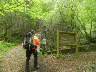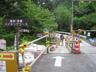 駒形から反時計回りの周回予定で歩きだします。現在ダム工事中で、ここが登山口ですが、以前はもう少し先まで車が入り、広めの駐車スペースがありました。 |