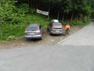 その登山口に着いて間もなくテントミータカ隊到着です。今日は午前の用事を済ませてからの出発だったそうで、会えないかなと思いましたが我らがのんびりしていたのでまたまたバッタリでした(^^ゞ