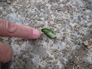 オトシブミ発見でした。この先もけっこう落ちていました。踏まれないように脇によけたりしましたが、いくつかは踏まれてました。 |