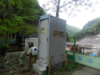 そして設置されていたトイレには「ご自由にお使いください」と書かれています。側には手洗い用の水のタンクまでついていました。いろいろと気遣いされているのですね。 |