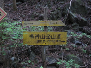 工事の前はここが登山口だったようです。この手前まで車が入れたようで広いスペースがありました。 鳴神山には以前にも一度来たことがありました。平成10年の3月ですからもう14年前になります。雪がチラついていたのを覚えていますが、ここまで歩いてきても当時の記憶が甦ってきません。後から記録を確認したら高畑山林道から反時計回りに歩いたようで、今回の逆側。コースが被っているのは稜線だけのようです。ナルカミスミレを求めて行ったもののまだ時期が早く空振り・・というより当時から見つけるのは難しかったのかもしれません。 |