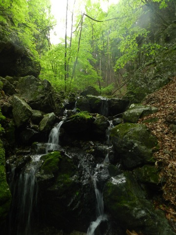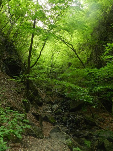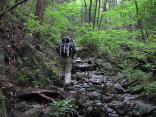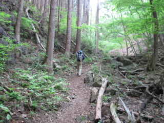 登山靴で濡れずに登っていけましたが、登山道には水がジャカジャカ流れていました。 |