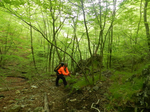 岩がごろごろの登りです。 |