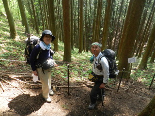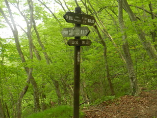 登りきったところが肩の広場。この右手、大滝山荘方面に少し下ったところにカッコソウが少し咲いているというので行ってみました。 |