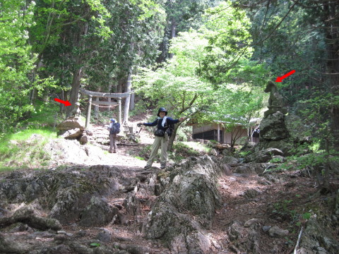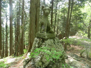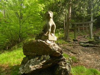 再び雷神岳神社の前。 ここで狛犬の位置が面白い位置に向かいあっているのを発見! ![]() |