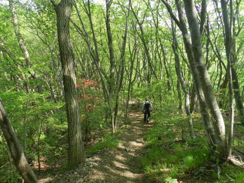 お花と新緑と・・気持ちの良い登山道です。 山頂までは1時間半だそうですが、写真を撮りながらのんびり歩いているのでなかなか先に進みません(^^ゞ 普通に歩いても亀ですが^_^; |