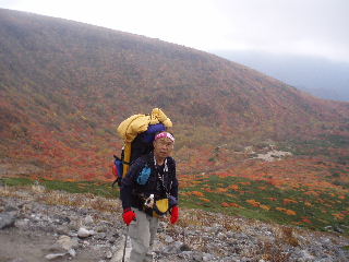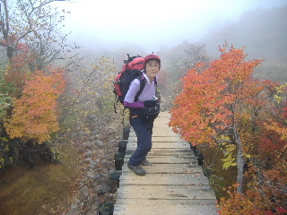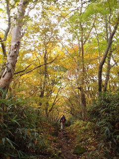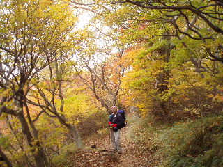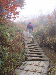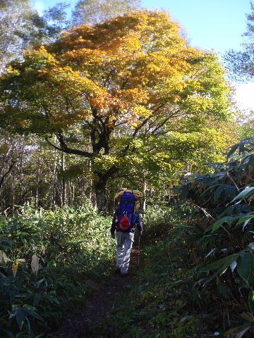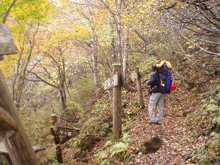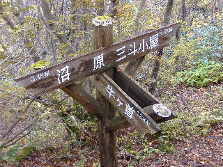 | H19年10月20-21日(土日) 天気;晴れ一時曇り Member.2人 【コ ー ス】(〜は歩、休憩時間含む) 20日:沼原(ぬまっぱら1275m)8:10〜ウバヶ平西側分岐9:32-45〜ひょうたん池10:00-30〜ウバヶ平(1590m)10:33-38〜牛ヶ首(1730m)11:02-22〜峰の茶屋(1720m)11:45〜避難小屋(1610m)12:00-40〜延命水13:03〜沼原分岐(1500m)13:13〜三斗小屋温泉(1460m)13:33-52〜隠居倉(1819m)14:49-53〜熊見曽根(1870m)15:20〜朝日岳分岐(1840m)15:28〜峰の茶屋(1720m)16:08〜避難小屋泊(1610m)16:25・・・所要時間約8時間15分(行動時間約6時間) 21日:避難小屋(1610m)7:50〜峰の茶屋(1720m)8:18-33〜避難小屋(1610m)8:50〜沼原分岐(1500m)9:21〜ウバヶ平西側分岐10:10〜ウバヶ平(1590m)10:26-11:47〜ウバヶ平西側分岐〜日の出平分岐12:50〜沼原湿原散策(1240m)13:10-50〜沼原P(1275m)14:00・・・所要時間約6時間10分(行動時間4時間弱) |