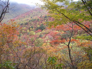 これが良かった! ずっとウバヶ平の紅葉を眺めながら歩いて行きます。 曇りがちできれいな写真でないのが残念です。 |