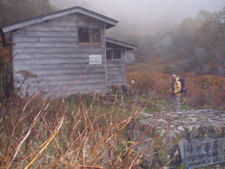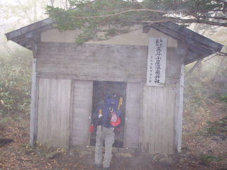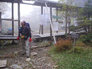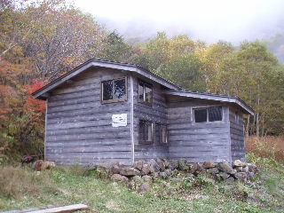 | 16:25 避難小屋到着。稜線だけでなくこの周辺もガスガスになってしまいました。 |