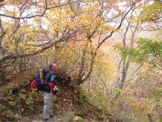 | インレッドさんの紅葉情報で一週遅れですが、ウバヶ平の紅葉は間に合うでしょうか?歩き始めて間もないこの彩りに少々心配になってきたのでした。 | ||||