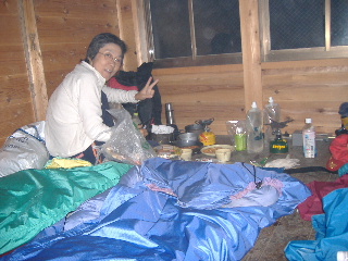 | だれか居ると思ったのですが、誰も居ませんでした。貸切です。やはり圧倒的に日帰りか、三斗小屋温泉泊のようです。そういえば前回もこの小屋貸切でした。意外と穴場なんですね〜♪ | ||||