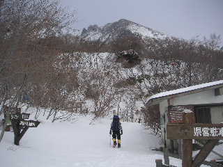 | 前に来た時はこの右の県営駐車場に停めて、ここから歩き出したのでした。その時朝日岳と三本槍岳までは行ったのですが、茶臼岳は強風のため断念しています。その後も機会を狙っていたのですが、天気に恵まれず、今回ようやく再トライです。 | |