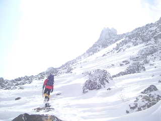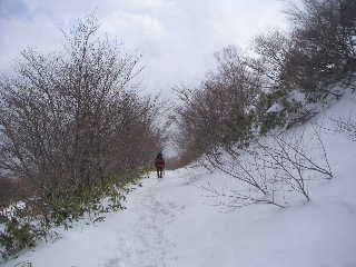 | 徐々に右に登って行きます。一面の雪になってきました。 | |