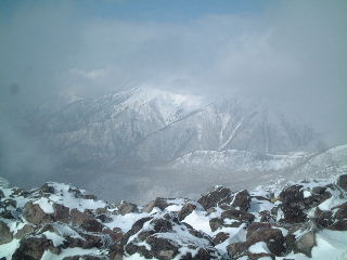 | 右前方の朝日岳、三本槍方向はいくらか見えました。 | |