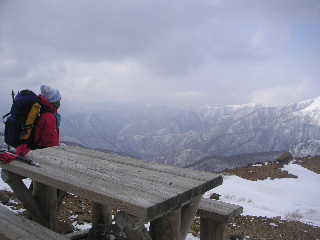 | 風が出てきたので上着を着込みます。今回もまた茶臼は断念かと思いつつ登りますが、振り返ると青空が広がってきました。 | |