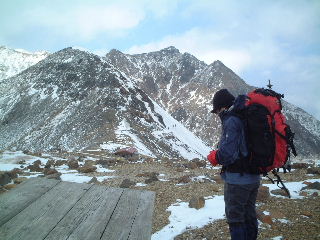 | 小屋には数名いました。今回出会った人は10人ちょっとでした。 小屋の中を見てから下山します。 |