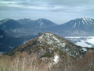 | 男体山の左には大真名子山、小真名子山、女峰山、太郎山が一望です。手前の小山が外山。 | |