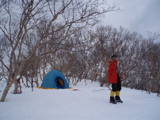 | H19年3月3日-4日(土ー日) 天気;3日晴れ、4日朝方ガス(曇り)のち晴れ Member.2人(夫婦) 【コ ー ス】(〜は歩、休憩時間含む) 3日:湯元8:40〜天狗平14:35(テント泊)・・・所要時間約6時間(バテていたのでタイムは参考になりません) 4日:天狗平6:05〜前白根山6:15〜分岐〜避難小屋6:42〜2470m辺りで引き返す8:00〜避難小屋8:25-40〜分岐〜前白根山9:30-35〜天狗平(テント撤収、昼食)9:45-11:17〜湯元分岐11:47〜休憩(12時前後約10分)〜上リフト13:00〜湯元駐車場13:15・・・所要時間約7時間10分 |