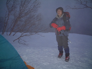| 【二日目:3/4】 起きるとなんと、外はガス! 予報は晴天なので、様子を見ながら行くことにしました。 |