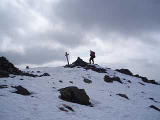 | スキー場から、スキー客の邪魔にならないよう脇を通りながら向かいます。途中に登山者カードのポストがありますので入れていきます。 | |