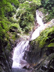 左【小川谷風景5:三段の滝】 (phot by Mr.Sakamoto 2002.07.06)