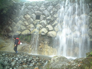 そこから10分ほど行けば堰堤で今回の沢登りの終点だった。充分堪能した満足感で、登山道へと向かった。登山道は崩壊などあり、かなり荒れていた。この日もし雨が降ったら嫌なルートだったろう。危険な場所にはロープが張られていたが、踏み跡はいくつか分かれていた所もあったので要注意。