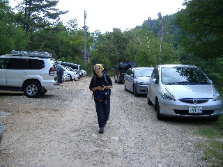 | キャンプ場へ。広い駐車場があります。 | ||||