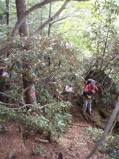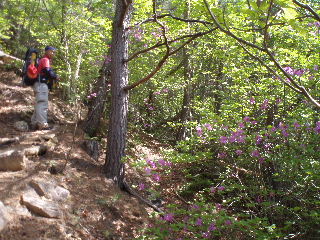 シャクナゲが少し咲いています。 上へ行けばもっと?と期待は膨らみますが・・・ |