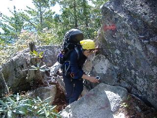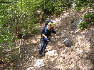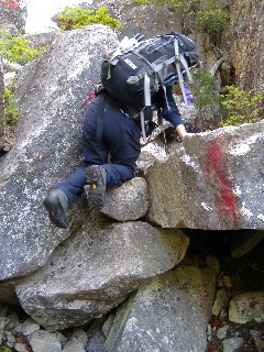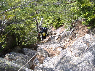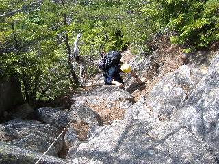 ロープなどもあって・・・ あったっけ?と思いつつ攀じ登っていきます。 クライマーならお茶の子さいさいの岩場でしょうけど^_^; |